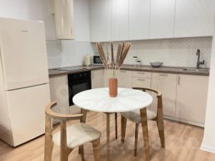 Квартира полностью готова к проживанию, укомплектована всей необходимой мебелью и бытовой техникой.