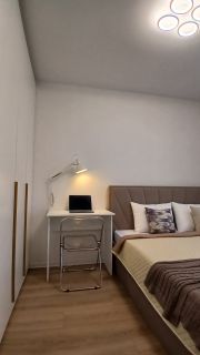 Для работы из дома имеется рабочий стол с настольной лампой в спальне. При желании, его можно легко разобрать и убрать вместе со складным стулом в кровать.