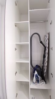 В квартире много мест для хранения (большой шкаф в спальне, шкаф в прихожей зоне, встроенный шкаф в нише в санузле, кровать с подъемным механизмом).