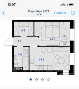 - кухня-гостинная, спальня, 2 гардеробных, санузел, прихожая