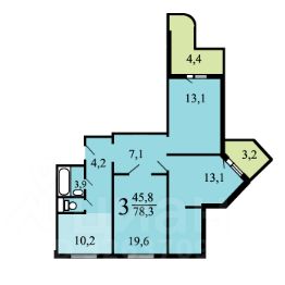 Три изолированные комнаты, раздельный санузел. Две лоджии добавляют дополнительное пространство для отдыха и хранения.