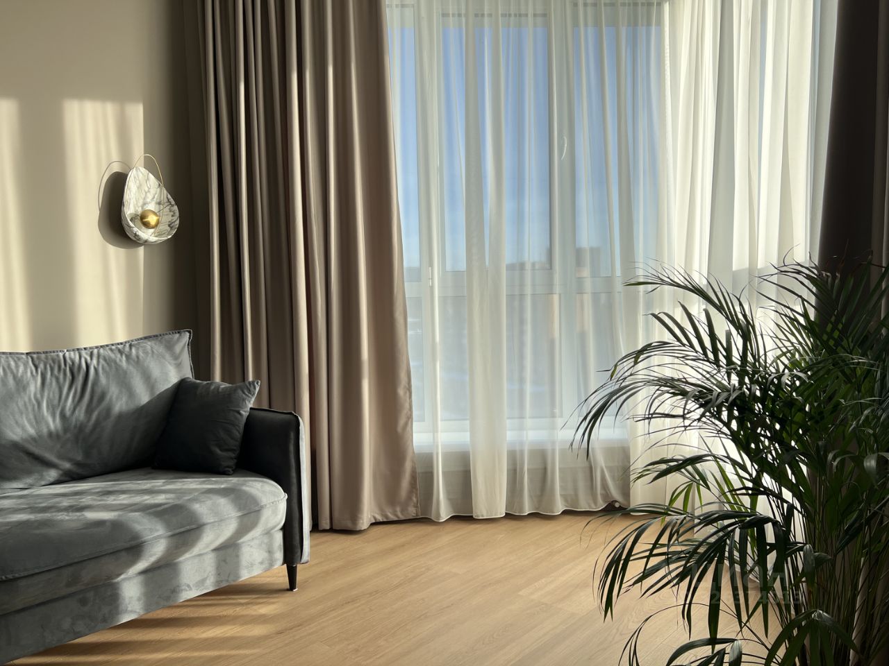 Сдаётся стильная однокомнатная квартира в апартаментах, расположенная по адресу Москва, Флотская улица, 7к4 . Общая площадь квартиры составляет 45 кв. м, находится на 8 этаже 28-этажного монолитного дома, построенного в 2017 году. Высокие потолки 3.1 метра создают ощущение простора и света.