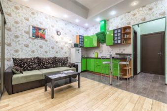 Квартира оборудована всем необходимым для комфортного проживания, включая стиральную машину, холодильник, микроволновую печь, телевизор, все для глажки, спутниковое телевидение и интернет. На период проживания гостям выдаются два комплекта постельного белья и полотенец. Оплата за интернет, воду и электричество производится отдельно.