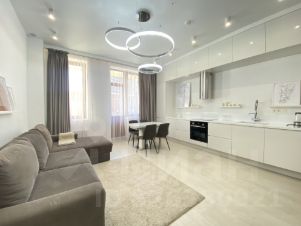 В апартаменте произведен авторский ремонт, по индивидуальному дизайн-проекту, имеет следующую планировку: просторная кухня-гостиная, изолированная приват зона, совмещенный санузел, гардеробная, прачечная, прихожая, балкон.