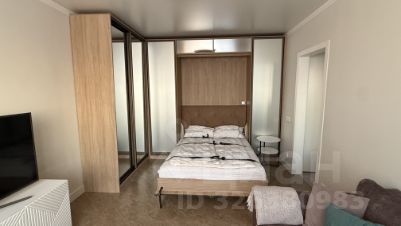 Спальня: телевизор смартTV, кондиционер на холод и тепло, новый диван, шкаф-кровать с умной вместительной гардеробной системой, тумбы, прикроватный столик.