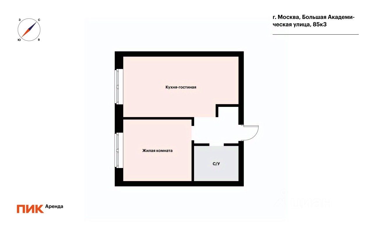 Сдаётся уютная евродвушка с хорошим ремонтом, просторной кухней-гостиной и совмещённым санузлом в ЖК Большая Академическая 85. Без депозита!