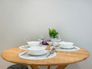 Оборудованная кухня, полный комплект посуды для приготовления и приёма еды,