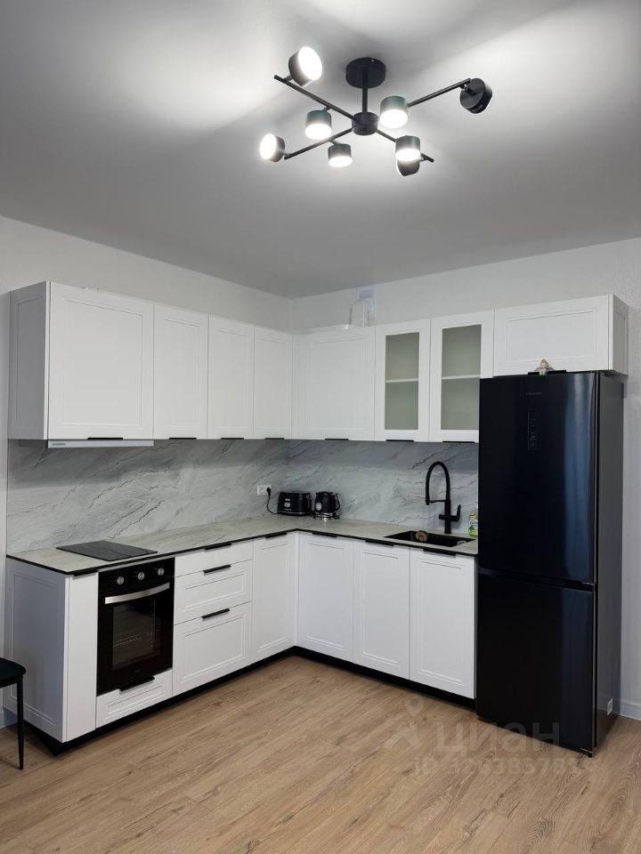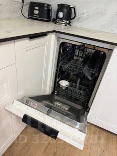 Оборудована всем необходимым - кухонный гарнитур, духовка, индукционная варочная панель, холодильник, посудомоечная машина, чайник, тостер, посуда.