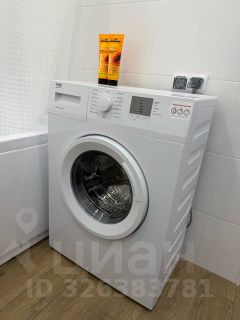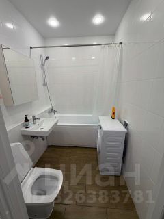 В ванной комнате - стиральная машина, унитаз, раковина, зеркальный шкаф.