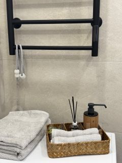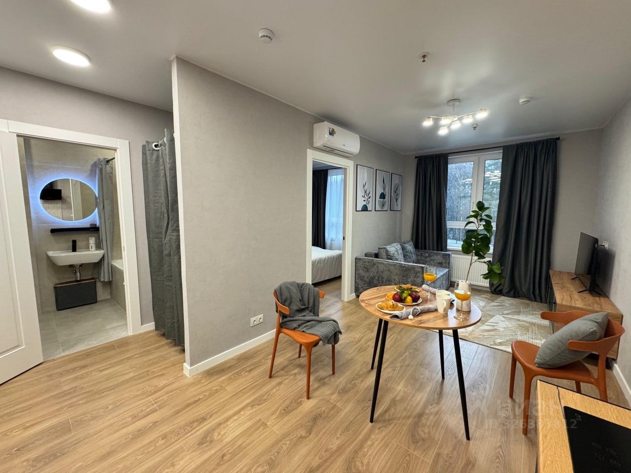 Есть всё нужное для проживания - зона кухни, кондиционер, стиральная машина, мебель, посуда, новый плазменный Smart TV, чайник, микроволновка, постельное белье, полотенца, шкаф, раскладной диван, двуспальная кровать, WI-FI, инсталляция, электрический полотенцесушитель, зона для хранения (гардеробная система).