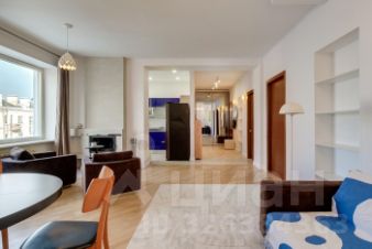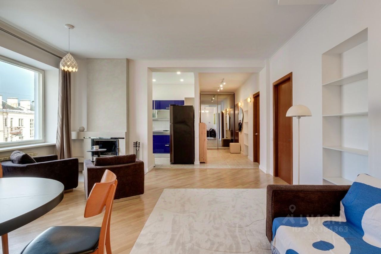 Центральным элементом гостиной является действующий камин, создающий особую атмосферу уюта и статуса — исключительное преимущество для аренды в центре города.