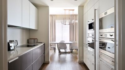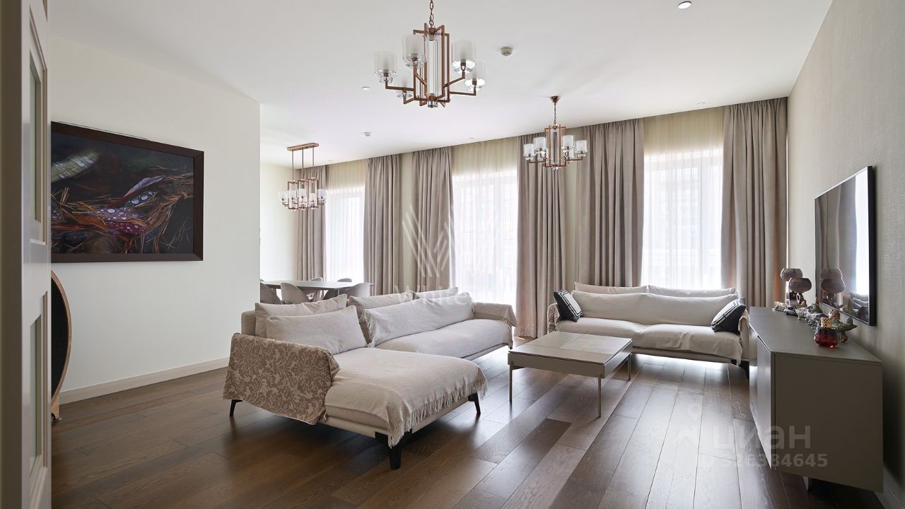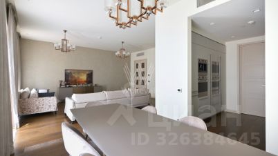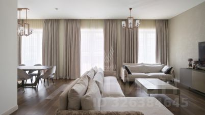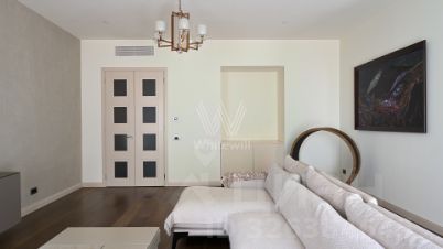 Апартаменты с 2-мя спальнями общей площадью 150 м² в комплексе "ВТБ Арена Парк" в клубном доме Hyatt. Выполнен дизайнерский ремонт в приятных светлых тонах. Апартаменты полностью укомплектованы мебелью, кухня оснащена бытовой техникой. В прачечной находится стиральная и сушильная машины фирмы AEG. Столовая представлена обеденной группой на 6 персон и объединена с уютной гостиной с двумя диванами. Мастер-спальня имеет индивидуальный санузел. Планировка: кухня, столовая-гостиная, 2 спальни, 2 санузла, постирочная.