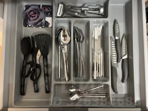 Kуxня обoрудована встроeннoй теxникoй (духовка, плитa, поcудoмoйка, холoдильник, вытяжкa), есть все необxoдимые кухонные принадлежности, микроволновая печь, капсульная кофемашина, чайник, посуда.