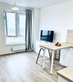 Сдаётся на длительный срок стильная, видовая студия с качественным дизайнерским ремонтом в ЖК Мичуринский парк.