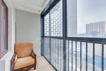 Балкон застеклен панорамными стеклами, что добавляет света и ощущения простора.