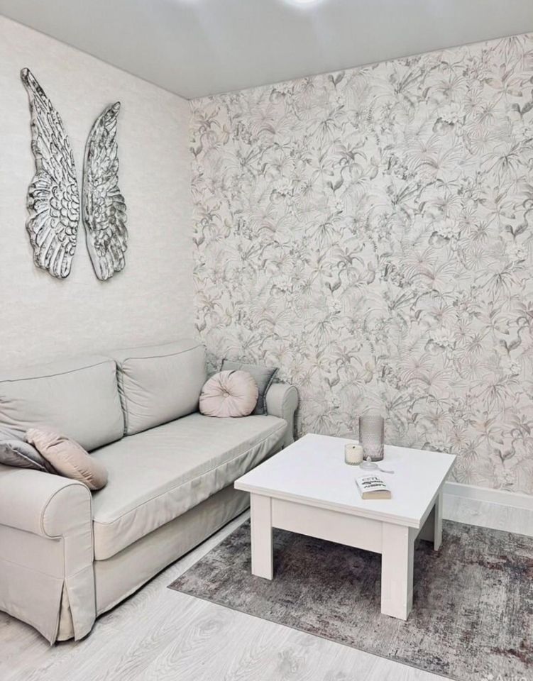 Kвapтиpa 45 кв.м.: cпaльня, кабинет-гардеробная, гостиная, кухня.