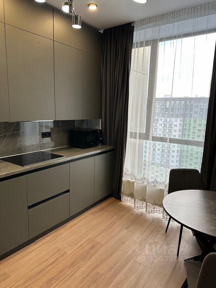 В квартире сделан ремонт и сдается впервые. Панорамные oкна, высокие потолки. Новый качественный ремонт, новая мебель, новая техника. В кухонный гарнитур встроены холодильник, варочная поверхность, посудомоечная машина, вытяжка. В спальне телевизор. В санузле стиральная машина.