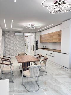 В квартире сделан свежий евроремонт, куплена современная новая мебель и техника (холодильник, стиральная машинка, СВЧ, духовой шкаф, стиральная машина 2к1 с сушкой, кондиционер). Фото полностью соответствуют действительности.