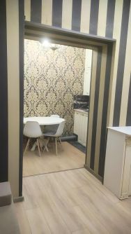 Квартира выполнена в дизайнерском стиле и полностью готова к проживанию. В комнате и на кухне есть вся необходимая мебель. Для вашего комфорта установлены холодильник и стиральная машина. Санузел совмещённый.
