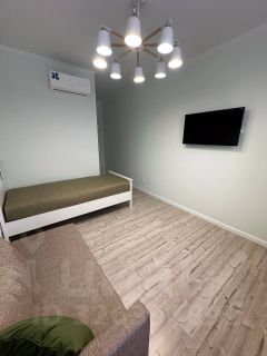 В светлой детской комнате можно, как удобно разместить всю необходимую технику и заниматься наукой, так и заниматься физической нагрузкой: йогой или танцами. Детская оборудована двумя спальными местами.