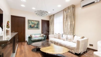 Просторная квартира с 2 спальнями общей площадью 102 м² в комплексе делюкс-класса "Дом на Смоленской" на 1 этаже. Интерьер оформлен в современном стиле. Квартира укомплектована мебелью и бытовой техникой Neff. Установлена система индивидуального кондиционирования.
