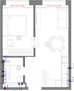 Ванная (не душ!), гигиенический душ, рабочее место, раздвижной обеденный стол, раскладывающийся диван, много мест хранения, теплые полы в санузле, интернет.
