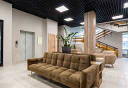 В здании для комфорта резидентов и гостей обустроена лаундж-зона с мягкими диванами и удобное лобби с ресепшеном, которые подчеркивают статусность проекта. Здесь вы сможете поработать, пообщаться с друзьями или просто отдохнуть. Также в комплексе предусмотрено место для хранения колясок и велосипедов, есть собственная автомобильная парковка.