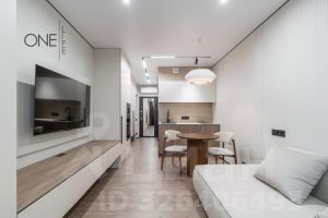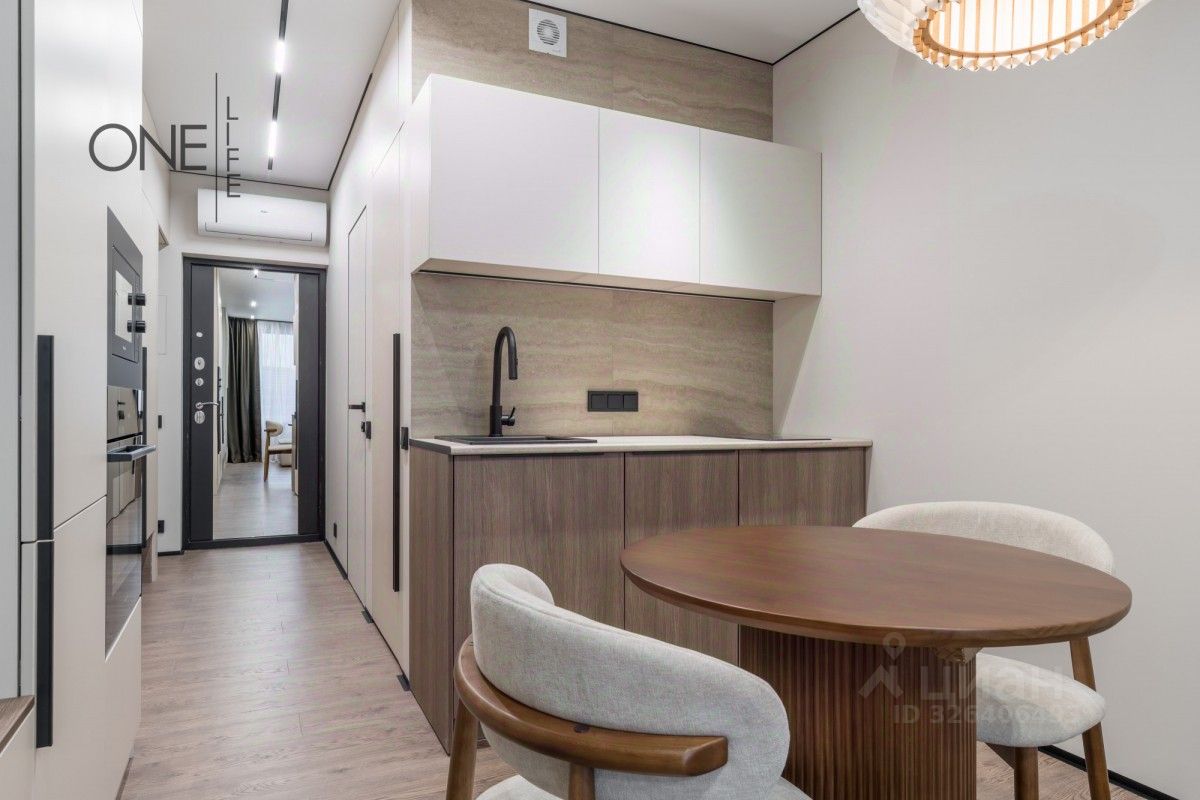 Общая площадь апартамента составляет 25 квадратных метров. Дизайнерский ремонт и продуманный интерьер делают эту студию идеальным местом для жизни. Апартмент полностью мебелирован и укомплектован необходимой бытовой техникой.