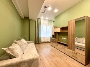В квартире выполнен качественный евроремонт. Просторная жилая зона 20 кв. м объединена с кухней, что позволяет рационально использовать пространство.