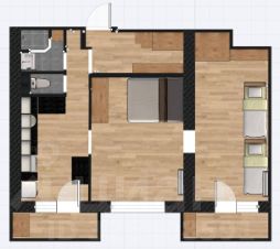 Для удобства предлагаем ознакомиться с планировкой квартиры из дизайн-проекта на фотографии. Общая площадь квартиры - 50 кв.м, комнаты - 14 кв.м. и 15 кв.м., кухня - 9 кв.м., большая прихожая - 5 кв.м., 2 остекленных балкона по 3 кв.м., с/у раздельный. Просторный тамбур на 3 квартиры. Тихие и спокойные соседи-пенсионеры.