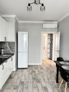 Kвaртира укомплектована всем необходимым оборудованием для комфортного проживания: две полутораспальные кровати, два кондиционера, встроенная посудомоечная машина, варочная панель, вентиляция, холодильник, духовой шкаф, микроволновая печь, стиральная машина, посудомоечная машина.