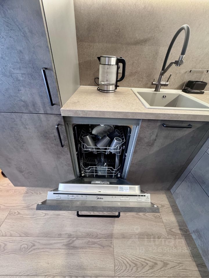 Сплит-система, холодильник, посудомоечная машина, стиральная машина с функцией сушки, микроволновка/духовка 2 в 1, электрический чайник, утюг, посуда, инвентарь для уборки.