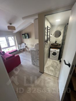 Планировка студии продумана до мелочей: есть всё необходимое для комфортного проживания. Окна выходят на улицу, наполняя помещение естественным светом. В апартаментах есть вся необходимая техника: кондиционер, холодильник, телевизор и стиральная машина. В санузле установлена душевая кабина. На втором этаже спальня, через дополнительное окно в крыше можно из постели смотреть на звезды.