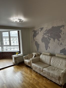 Зал совмещен с просторной видовой лоджией с увеличенной площадью остекления и теплым эл. полом, в зале кожаный финский раскладной диван и кожаное кресло, стенка с подсветкой.