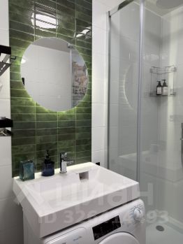 В санузле установлена душевая система с тропическим душем, стиральная машина, полотенцесушитель.