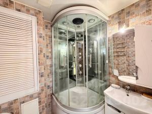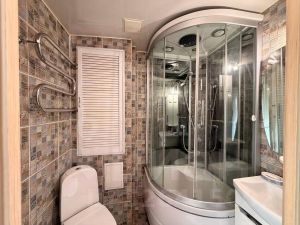 Кухня укомплектована ТЕХНИКОЙ: есть стиральная машина и микроволновка. На кухне стоит удобный РАСКЛАДНОЙ СТОЛ.