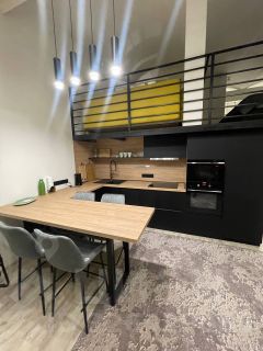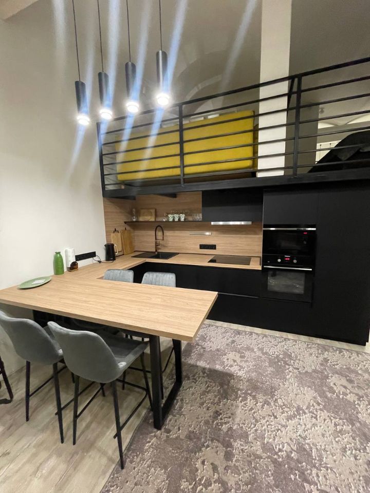 Аппартаменты выполнены в дизайнерском стиле с использованием высококачественных материалов. Просторная кухня оборудована всей необходимой мебелью и современной техникой: холодильник, посудомоечная машина и стиральная машина. Гардеробная. В комнатах также есть мебель, а в гостиной установлен телевизор. В квартире два санузла, один из которых совмещённый, а другой — отдельный, есть ванна и душевая кабина, что очень удобно.
