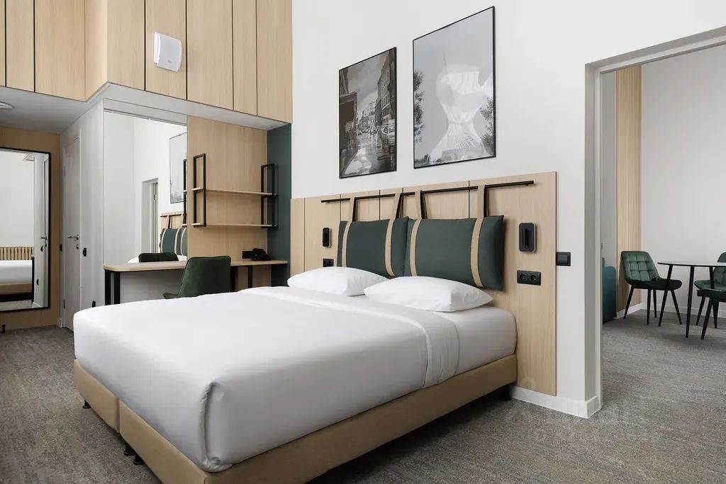 Просторные апартаменты для семей или компаний до 4 человек. Две отдельные комнаты, два санузла и полностью оборудованная кухня делают этот вариант идеальным для длительного проживания. Модификация номера может отличаться от представленной на фото.