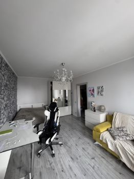 Квартира полностью меблирована: в комнате и на кухне установлена вся необходимая мебель. Из техники есть 2 кондиционера, холодильник, посудомоечная и стиральная машины.