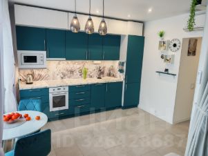 Современная стильная и функциональная кухня с антресолями под потолок выполнена в цвете Аквамарин, оснащена всей необходимой техникой и посудой, включая новые фарфоровые столовый и чайный сервизы, бокалы, фужеры, кастрюлю, сковороду, органайзеры и столовые принадлежности.