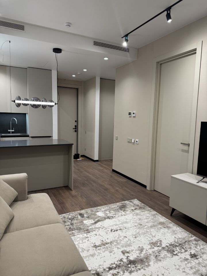 Предлагается в аренду Евро 2-комнатная квартира (просторная гостиная с кухонной зоной + спальня) с панорамными окнами и премиальной отделкой в корпусе Graphite ЖК Symphony 34. Лучший корпус в этом ЖК. Квартира полностью укомплектована по всем стандартам комфортного жилья: - система умный дом, - современная встроенная техника :духовой шкаф, полноценная варочная панель, посудомоечная машина, стиральная машина с сушкой, холодильник, микроволновая печь, вытяжка, измельчитель, встроенный фильтр питьевой воды, телевизор, - система кондиционирования и приточная вентиляция, - теплые полы, - защита от протечек, - водонагреватель, сдается впервые. Вся встроенная мебель по индивидуальному дизайн проекту. Безопасность в ЖК Symphony 34. - Система контроля входа на территорию комплекса, - Система автоматического водяного пожаротушения и противопожарного водопровода, система пожарной вентиляции - Доступ на парковку при помощи системы распознавания автомобильных номеров, карточка для контроля доступа резидентов - Система видеонаблюдения - Круглосуточная связь через приложение, телефон, голосовые сообщения с охраной, консьержем, call-центр. Расположение. Пешком: 10 минут до метро "Дмитровская" 15 минут до Тимирязевского парка На машине: 10 минут до Савеловского вокзала и Аэроэкспресса в Шереметьево 15 минут до Москва-Сити и Садового кольца Благоустройство. - 70% территории отведены под зеленые насаждения и ландшафтный дизайн - Приватный Японский сад - Детские площадки с зонированием по возрасту. - Зона для пикника, зона с гамаками - Инфраструктура постоянно расширяется, планируется ресторан, уже работают пункты выдачи Ozon, WB, Яндекс, кофейня Surf, аптека. Окружение. - В 15 минутах от Symphony 34 находится дизайн-завод Flacon, где регулярно проходят культурно-образовательные и развлекательные мероприятия; Хлебозавод 9 - здесь находятся шоурумы брендов, кафе разных кухонь мира, образовательные проекты и площадки для мероприятий. - в пешей доступности два парка: Тимирязевский парк расположен в 850 м, площадью 232 га, а также парк "Дубки", площадью 16,5 га.