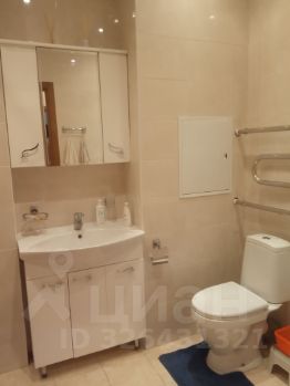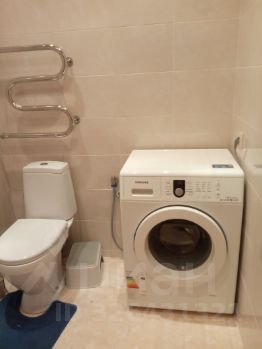 Просторная ванная, совмещенная с санузлом, там же находится стиральная машина.