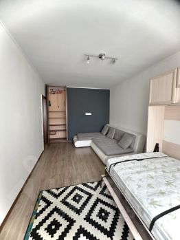 В комнате угловой диван который разделяется на две части для удобной планировки, встроенный шкаф, интернет, кондиционер и конечно же кровать трансформер с дополнительными камерами хранения.