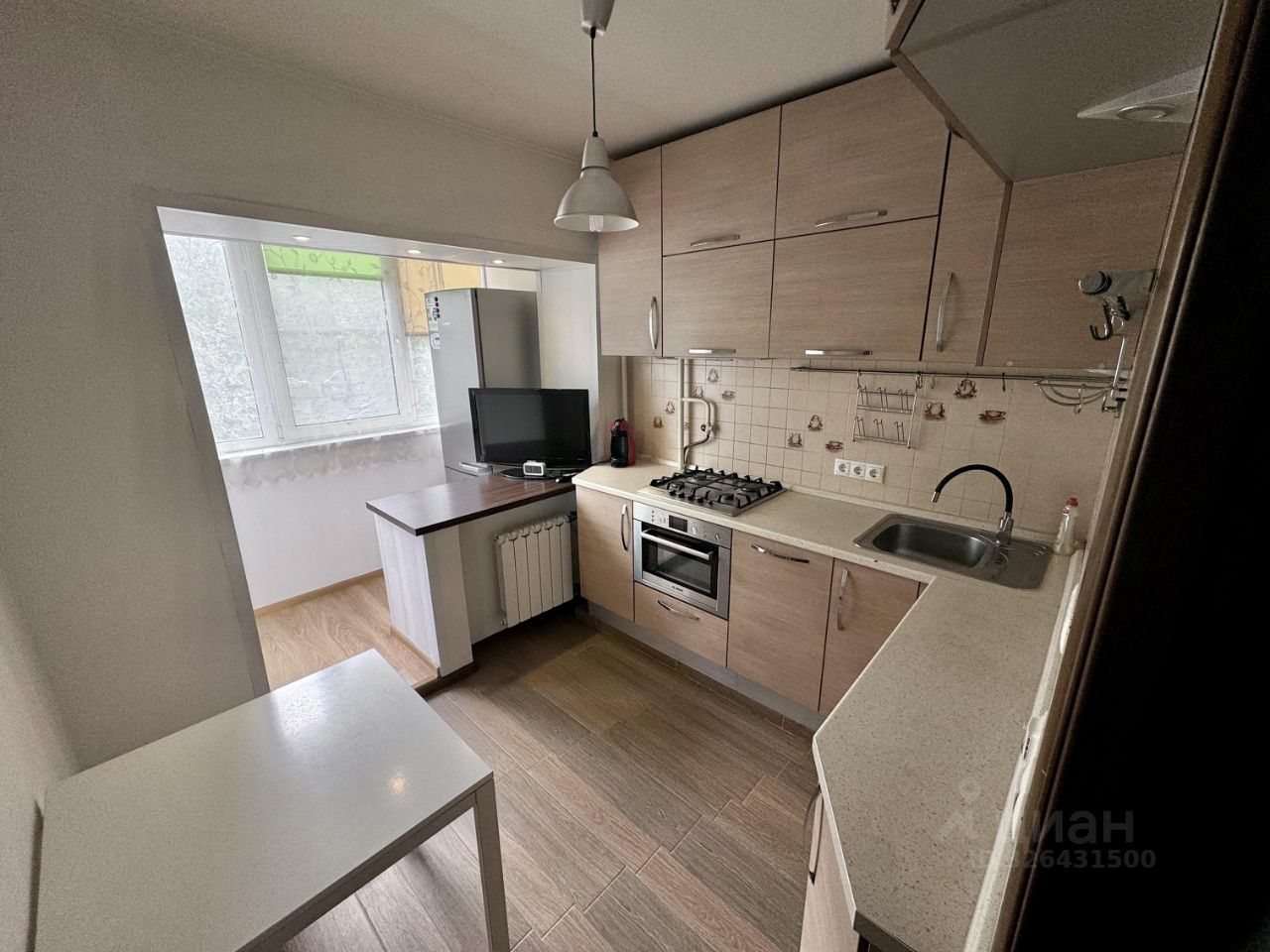 Кухня совмещена с балконом увеличивая ее пространство.
