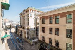 ID 32129. Стильная 6 -комнатная квартира в доходном доме Коровина, расположена в тихом переулке между Пречистенкой и Арбатом. Современный ремонт из натуральных материалов. Полная комплектация мебелью и техникой. Установлен кондиционер, теплые полы. Функциональная планировка: общая площадь 220 кв. м, гостиная, кухня, столовая, 3 спальни, кабинет, 2 ванные комнаты и гостевой санузел, 2 гардеробные комнаты, балкон. Окна выходят на 2 стороны, высота потолков 3.60 м. Огороженная территория, консьерж, домофон. Парковка в закрытом дворе. В ближайшем доступе: Храм Христа Спасителя, Кремль, кафе, магазины, рестораны, бары, салоны красоты, музеи, театры и галереи. Можно с детьми. Животные обсуждаются.
