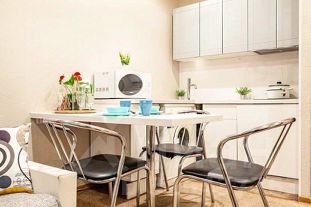 Современная мебель, двуспальная кровать, бытовая техника, скоростной WI-FI, спутниковое TV, гладильная доска, сушилка для белья, фен, оборудованная кухня, полный комплект посуды для приготовления и приёма еды