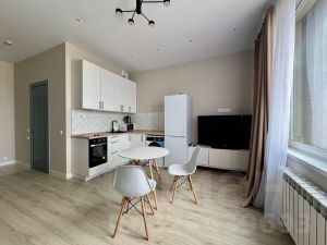 Квартира в отличном состоянии, после ремонта. Есть все самое необходимое для комфортного проживания: кондиционер, стиральная машина, ТВ со SberBox, кухонная техника (холодильник, духовка, варочная панель, вытяжка, СВЧ, чайник). Вся мебель и бытовая техника - новая. Квартира светлая, теплая, с красивым видом на город.