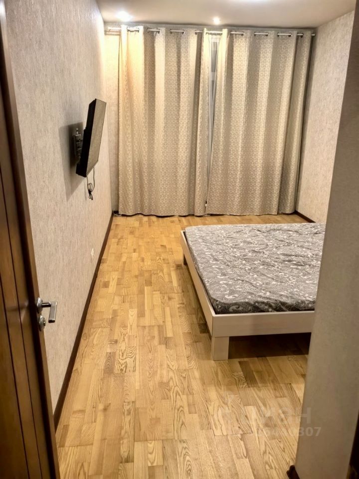 В предлагаемой комнате двуспальная кровать, окно, тв и встроенный шкаф. Комната закрывается. Балкона в квартире нет.