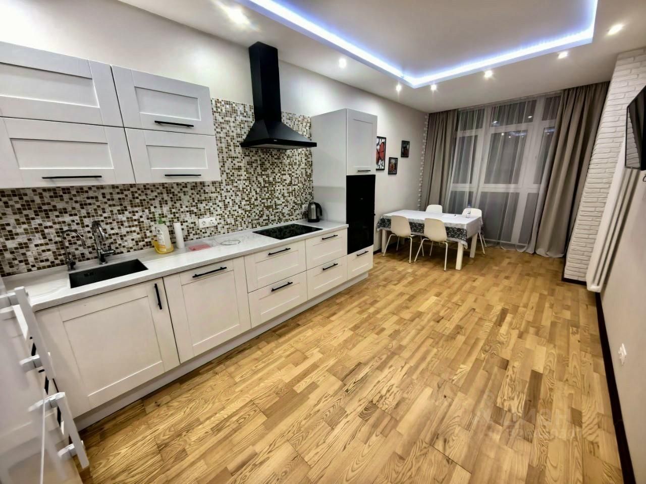 На кухне есть вся техника и мебель включая посудомоечную машину и большой смарт тв. Есть интернет 600 м/бит.