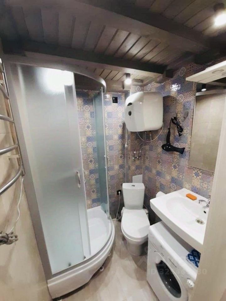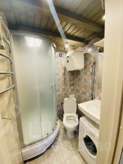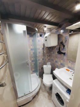 Санузел совмещенный, оснащён душевой кабиной и стиральной машиной.